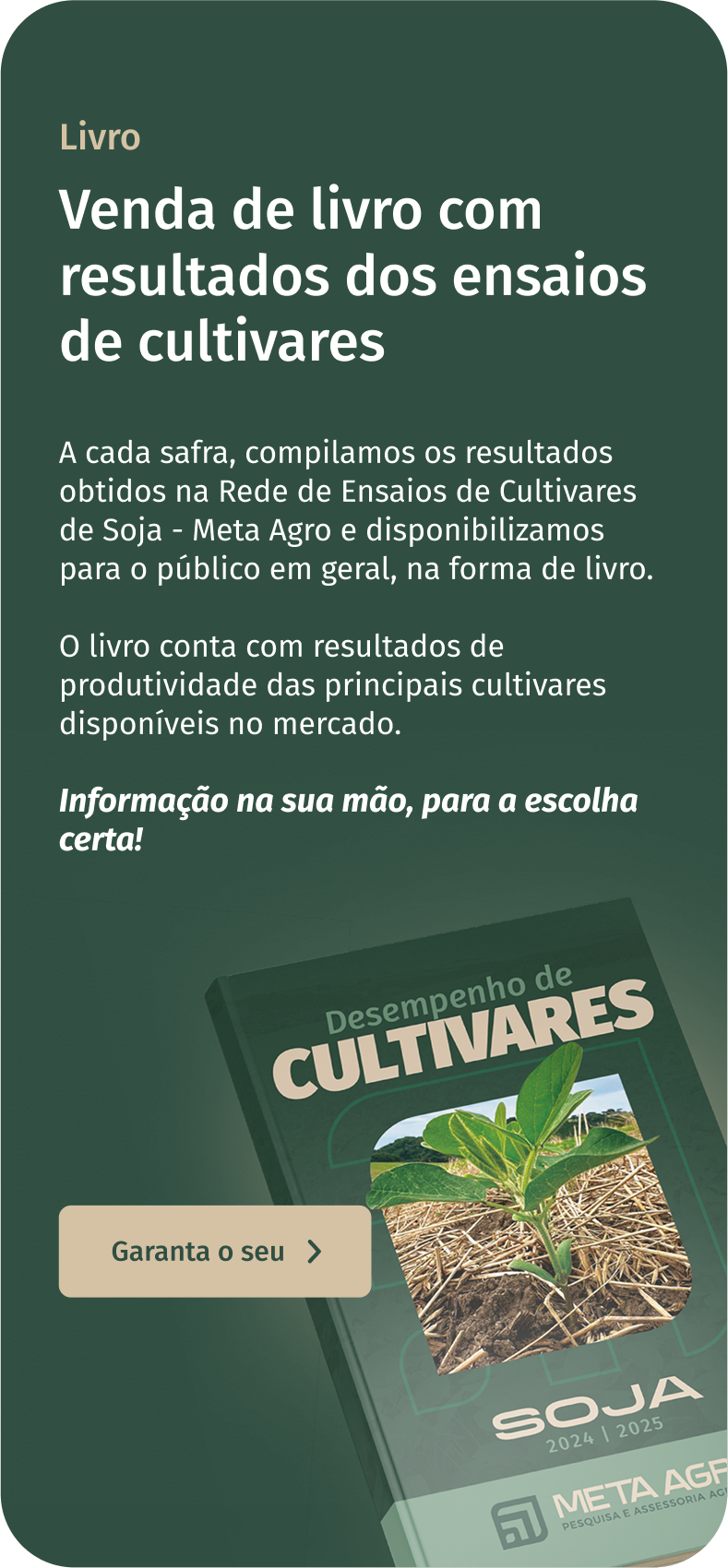 Esse é um trabalho realizado com base nos resultados das pesquisas conduzidas na Rede de Ensaios de Cultivares de Soja - Meta Agro, onde oferecemos um serviço personalizado, através de uma reunião com o agricultor, para entender a dinâmica da propriedade, condições de solo e clima, manejo de rotação de culturas adotado na propriedade para então definir as cultivares que serão semeadas e qual o melhor momento para a semeadura das mesmas.